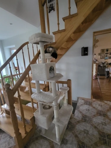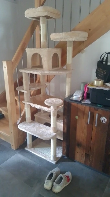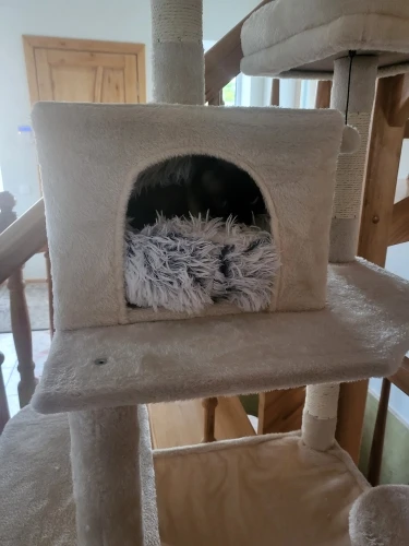 Its good for the price. If there is one cat on the top row and it moves., the whole construction is shaking a bit but i guess thats to be expected. Other than that easy to assemble and looks good, no strong bad smells from the product