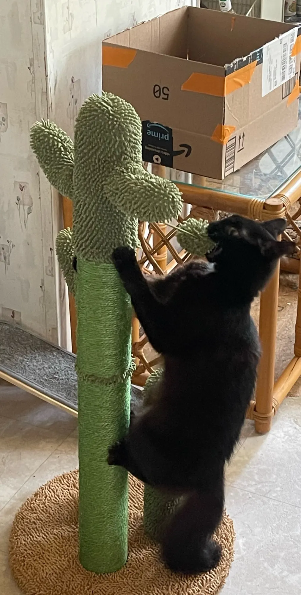 - Unique Design - This cat scratching post features a cute cactus design, like having a miniature Saguaro cactus in your home.